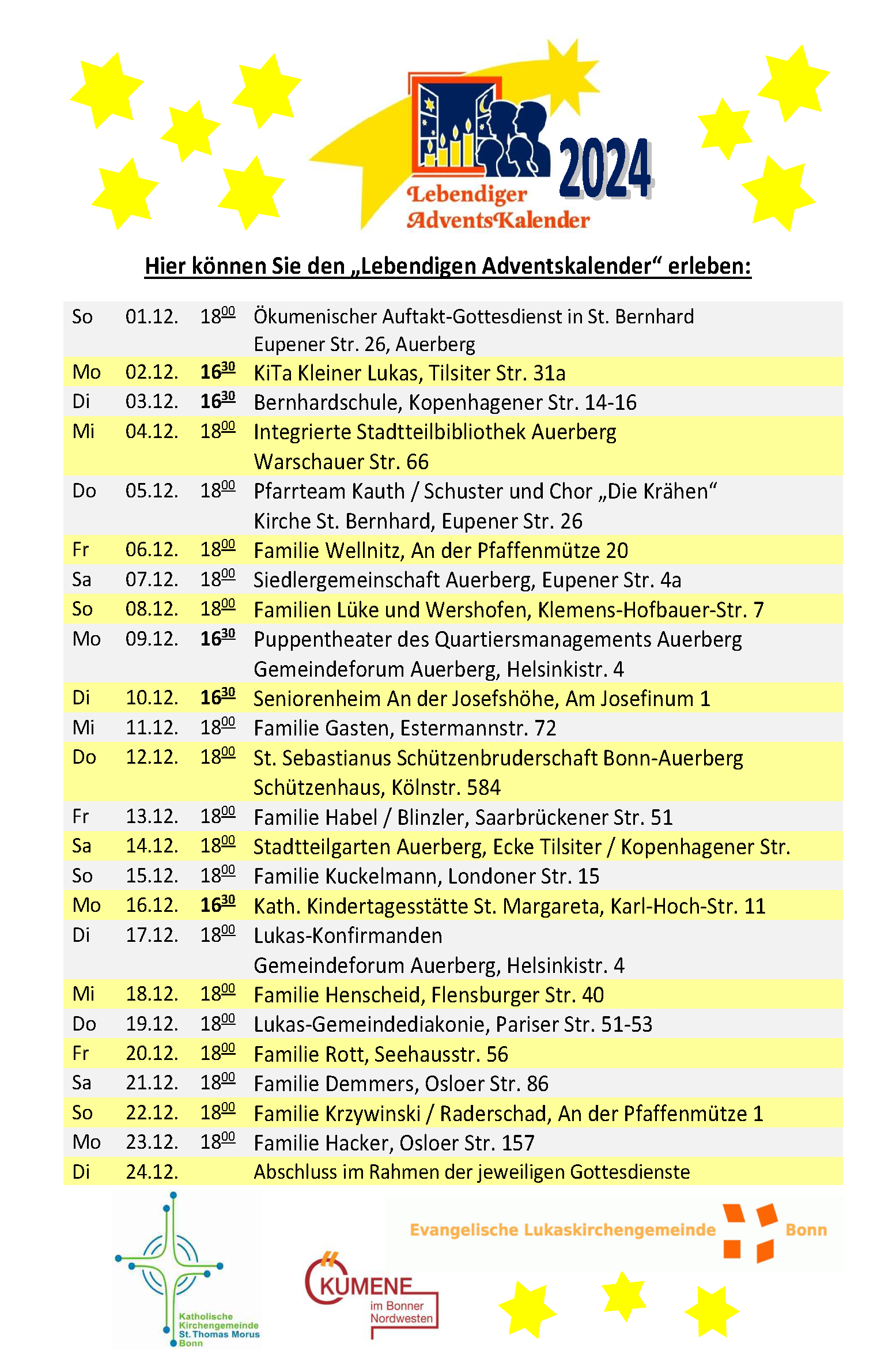 Handzettel Lebendiger Adventskalender 2024